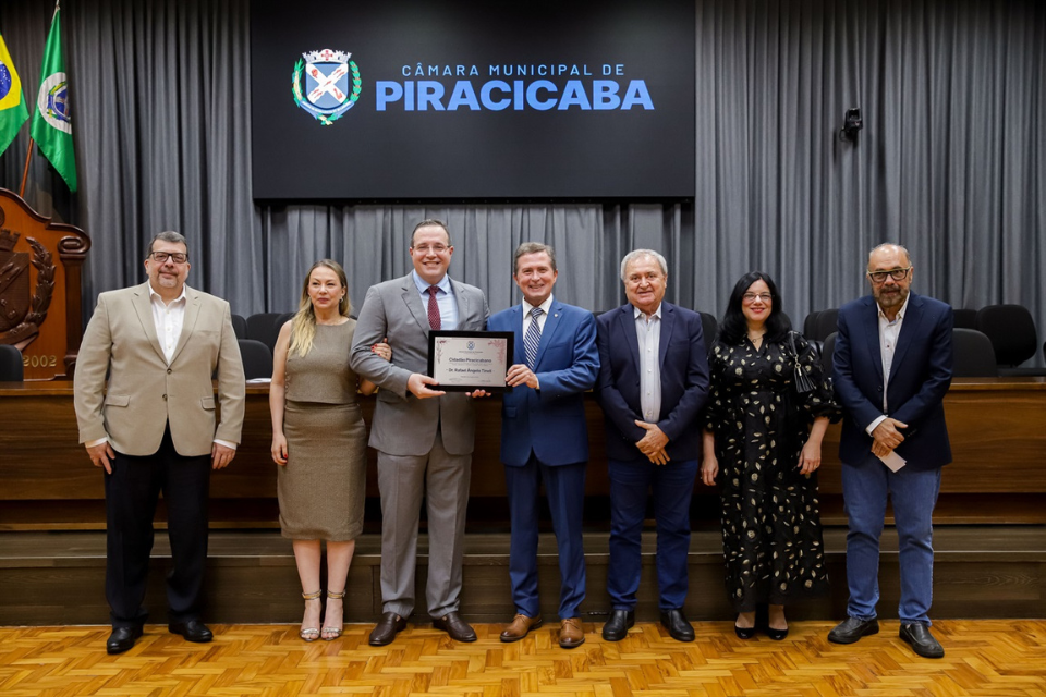 O cardiologista e tesoureiro da Associação Paulista de Medicina – Piracicaba, Rafael Ângelo Tineli, recebeu o título de Cidadão Piracicabano na última sexta-feira, 14 de novembro. A honraria foi entregue em solenidade no salão nobre “Helly de Campos Melges”, no prédio principal da Câmara Municipal.