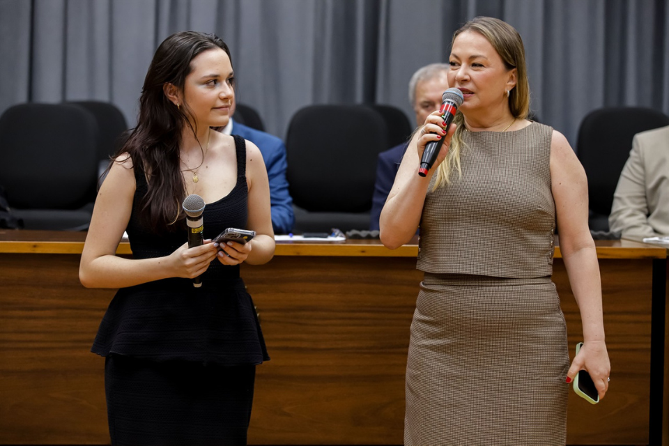 A solenidade também ganhou um momento especial, com a esposa de Rafael, Luciana Marcolino Tineli, e sua enteada, Luana Marcolino, na recitação de um poema, do americano Edgar Master.